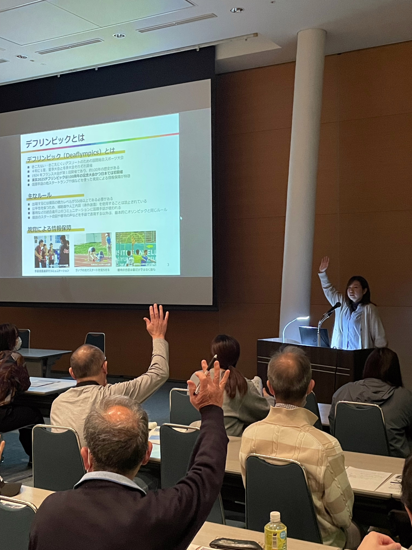 今年は聴覚に障害のある方のため国際的なスポーツ大会であるデフリンピックが日本で初開催されます。静岡県は、伊豆市の日本サイクルスポーツセンターが自転車競技(ロード・MTB)の会場となっています。県スポーツ振興課から、大会の概要や大会で活用できる手話によるあいさつなどを紹介しました。