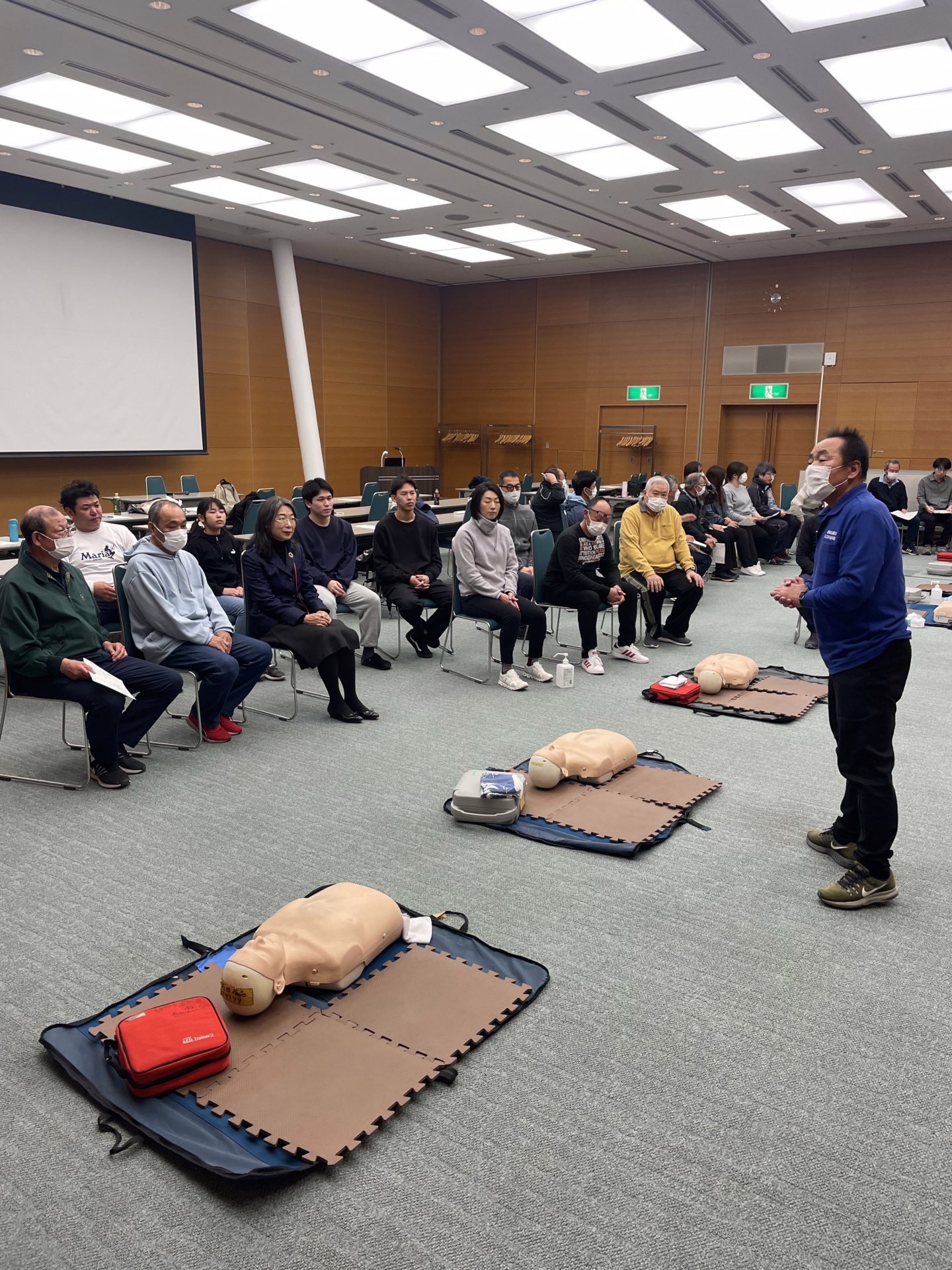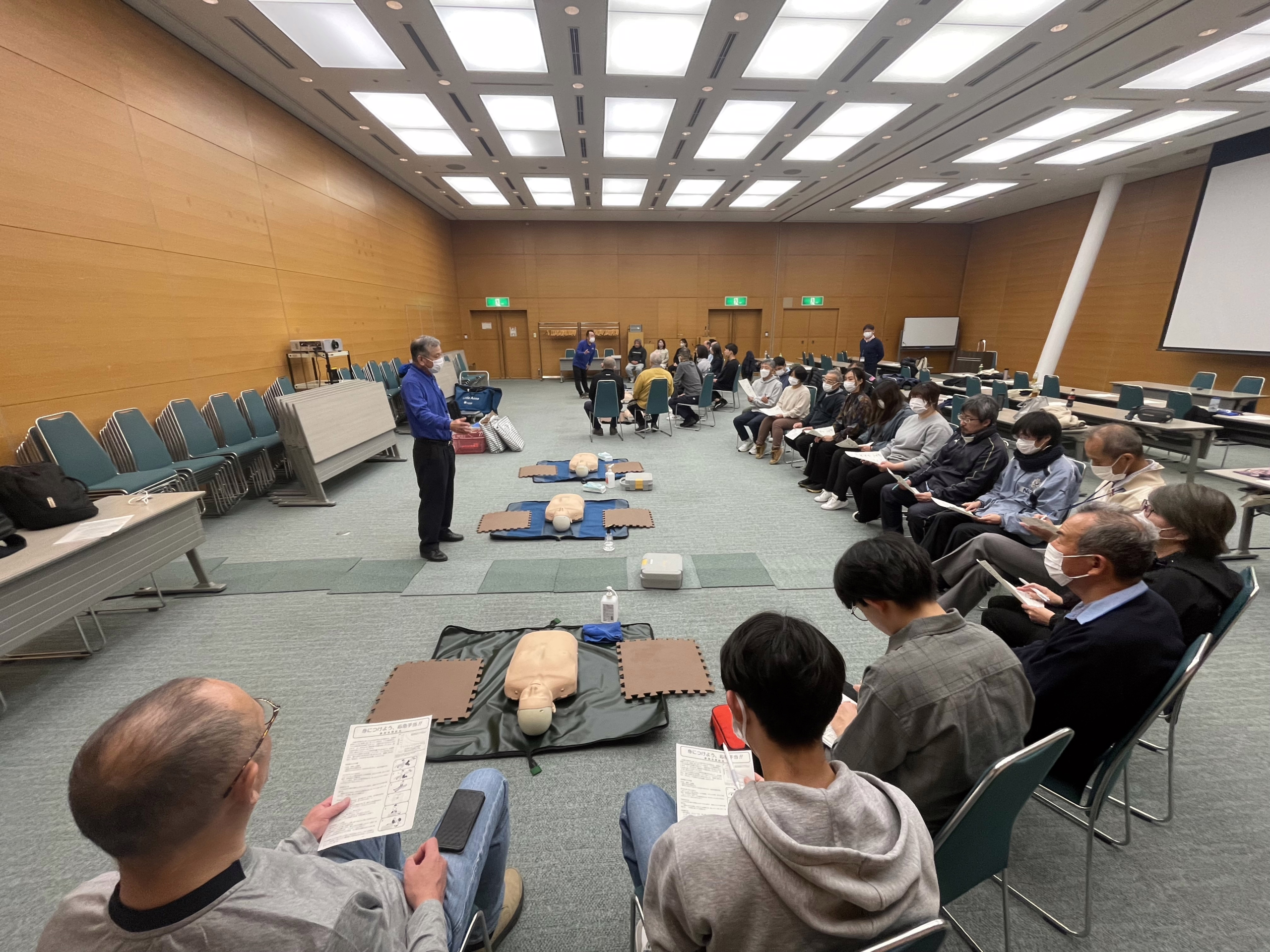 令和7年3月2日(日)に静岡県コンベンションアーツセンター「グランシップ」で、ふじのくにスポーツボランティア登録者等を対象とした研修会を開催しました。今回は、事前アンケートで希望の多かった救急救命講習をメインとしました。当日は幅広い世代の31名の方にご参加いただきました。