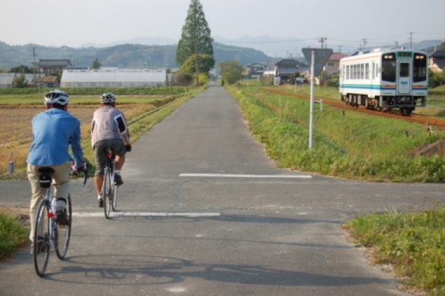 掛川駅から原泉エリアを折り返すように周遊する。平坦路と起伏が適度に入り交じり、景色も変化が多く飽きないコース。軽いトレーニングにもお勧めできる。