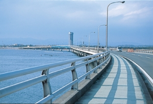 弁天島海浜公園から浜名湖ガーデンパークへ。湖上にかかる橋を楽しみながら、さぁスタート!